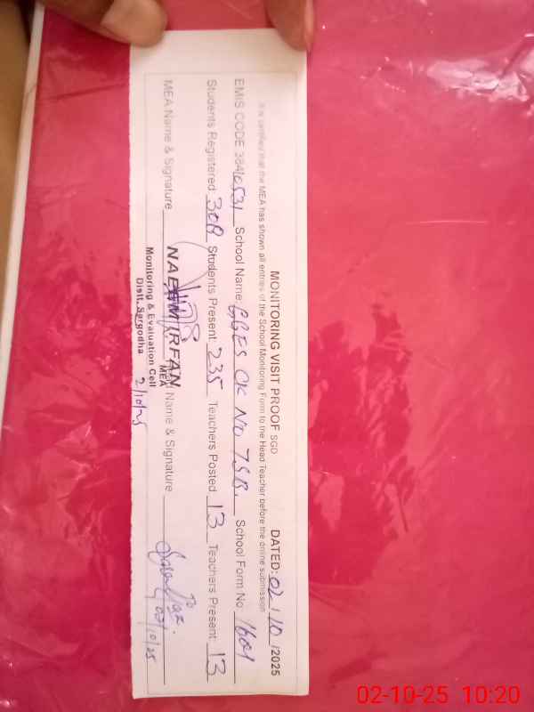 | Certified that this School was Inspected by the Undersigned MEA/DMO Today and the Information Stated Above is as Per Record. | |||||