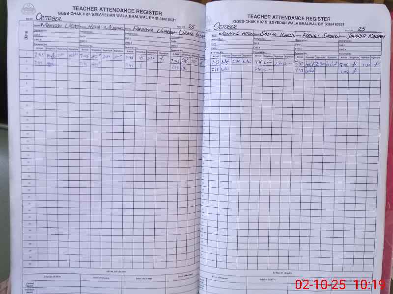 | EMIS Code: 38410531 | Name of School: GGES CHAK NO. 7 SB SYEDAN WALA | |||