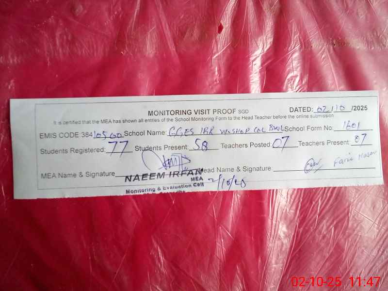 | EMIS Code: 38410500 | Name of School: GGES IRRIGATION WORKSHOP COLONY BHALWAL | |||