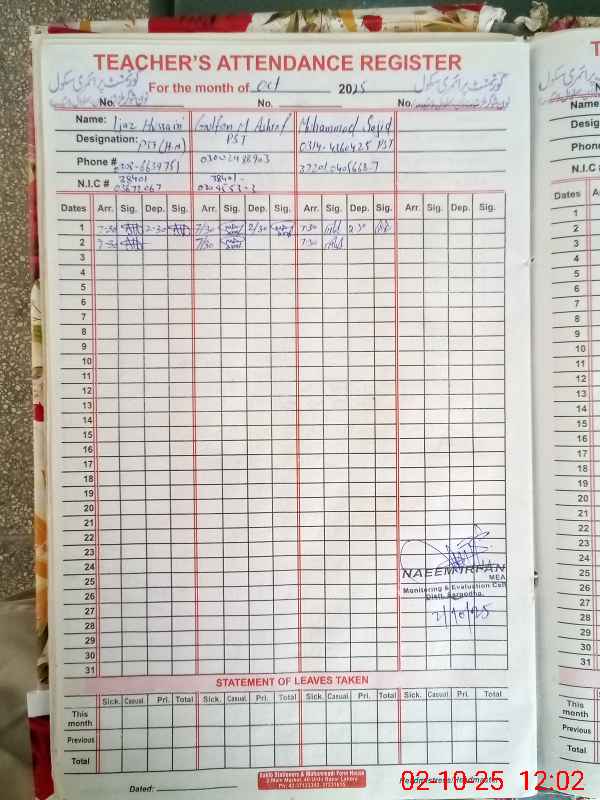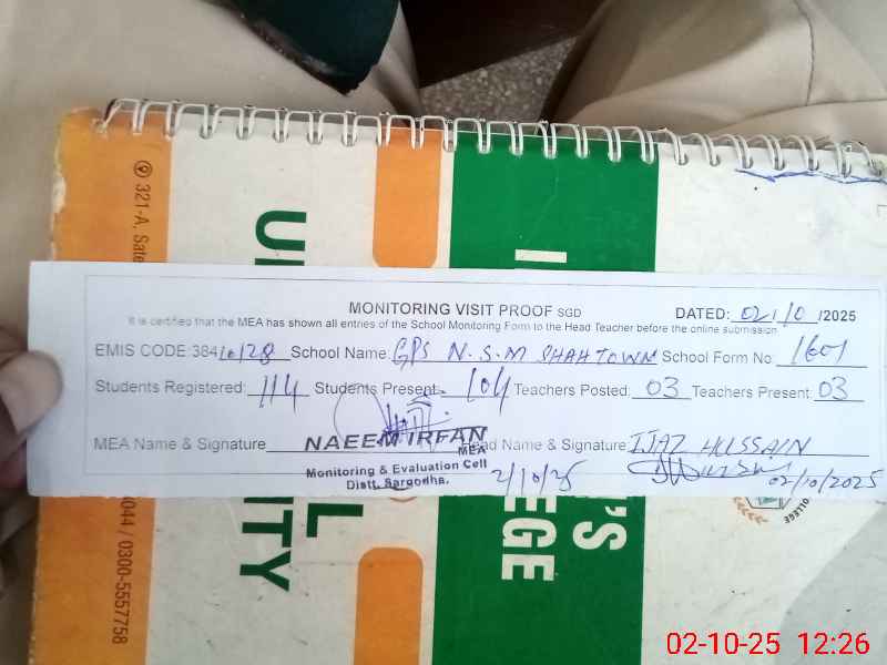 | Attendance Register | Head Teacher | MEA with School | Visit Proof |