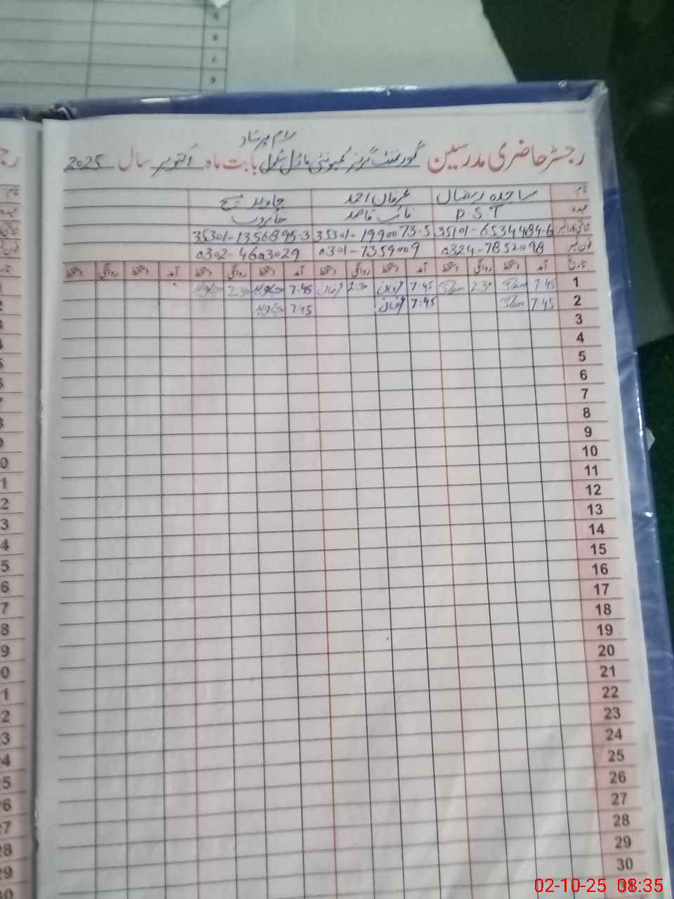 | Name: SA**** RA**** Designation: (School Headmaster's/Headmistress's) PST Phone/Cell Number: 03**** |