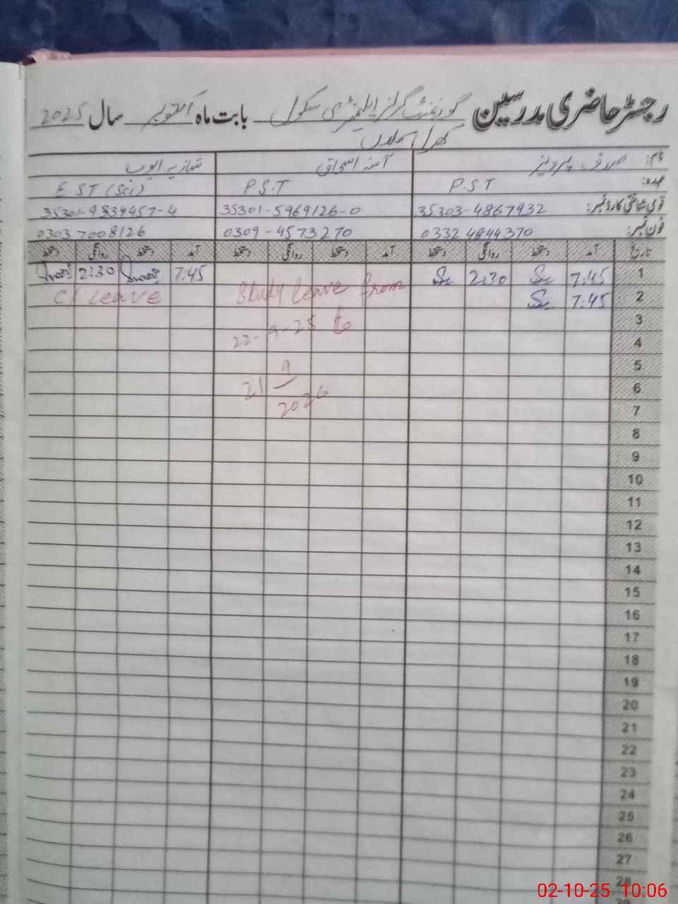 | Name: Uz**** Iq**** Designation: (School Headmaster's/Headmistress's) Sst Phone/Cell Number: 03**** |
