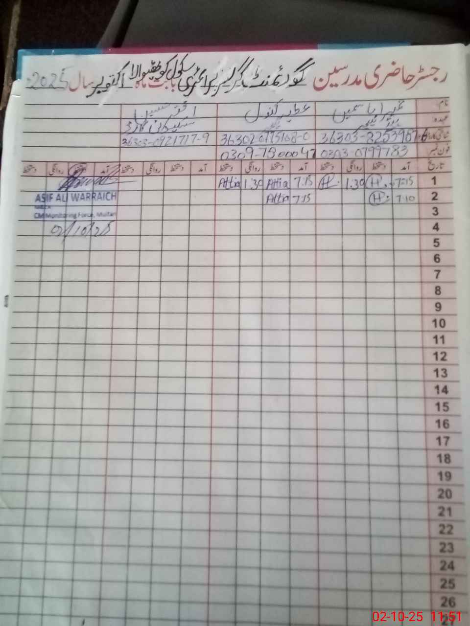 | Name: No**** UlAn**** Kk**** Designation: (School Headmaster's/Headmistress's) PST Phone/Cell Number: 03**** |