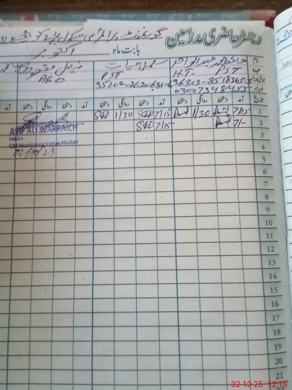| Name: Ha**** MAb**** Wa**** Designation: (School Headmaster's/Headmistress's) HEADMASTER Phone/Cell Number: 03**** |