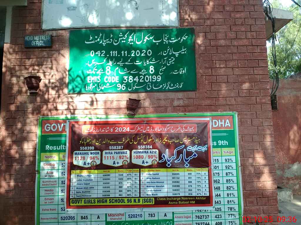 | EMIS Code: 38420199 | Name of School: GGHS CHAK NO.96 NB | |||