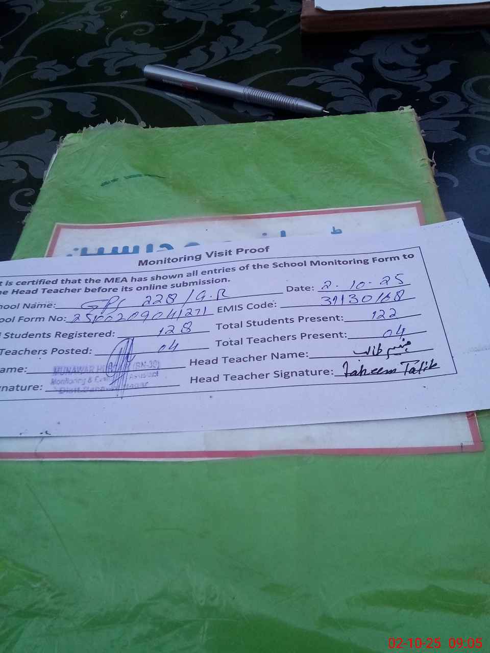 | EMIS Code: 31130168 | Name of School: GPS CHAK 228/9-R | |||