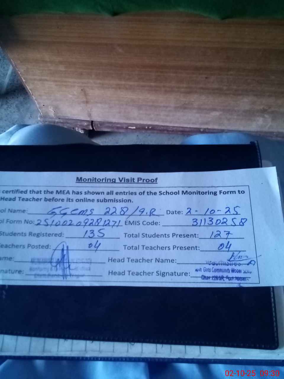 | EMIS Code: 31130258 | Name of School: GGCMS CHAK NO 228/9-R | |||