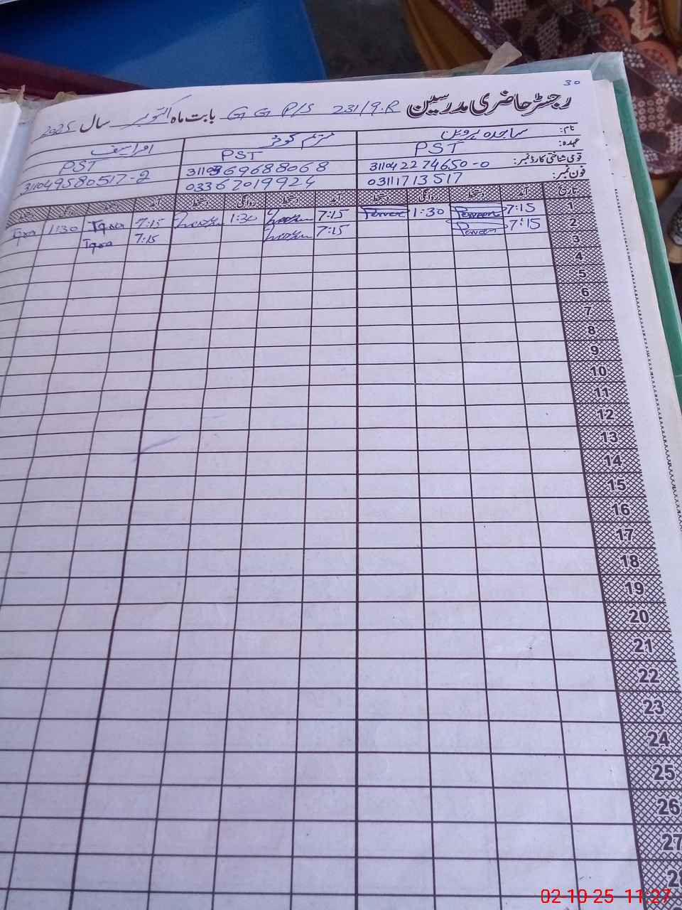 | Name: SA**** PE**** Designation: (School Headmaster's/Headmistress's) PTC/JV Phone/Cell Number: 03**** |