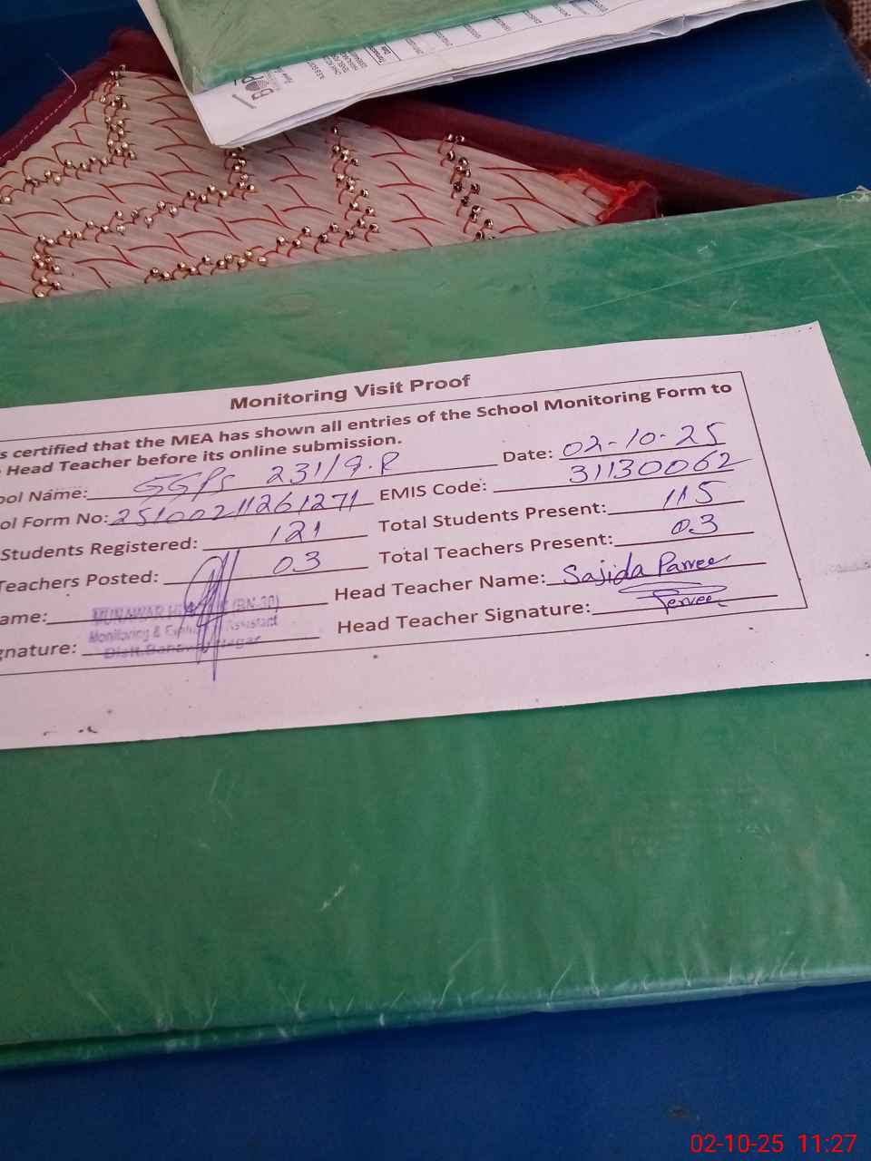 | EMIS Code: 31130062 | Name of School: GGPS CHAK 231/9-R | |||