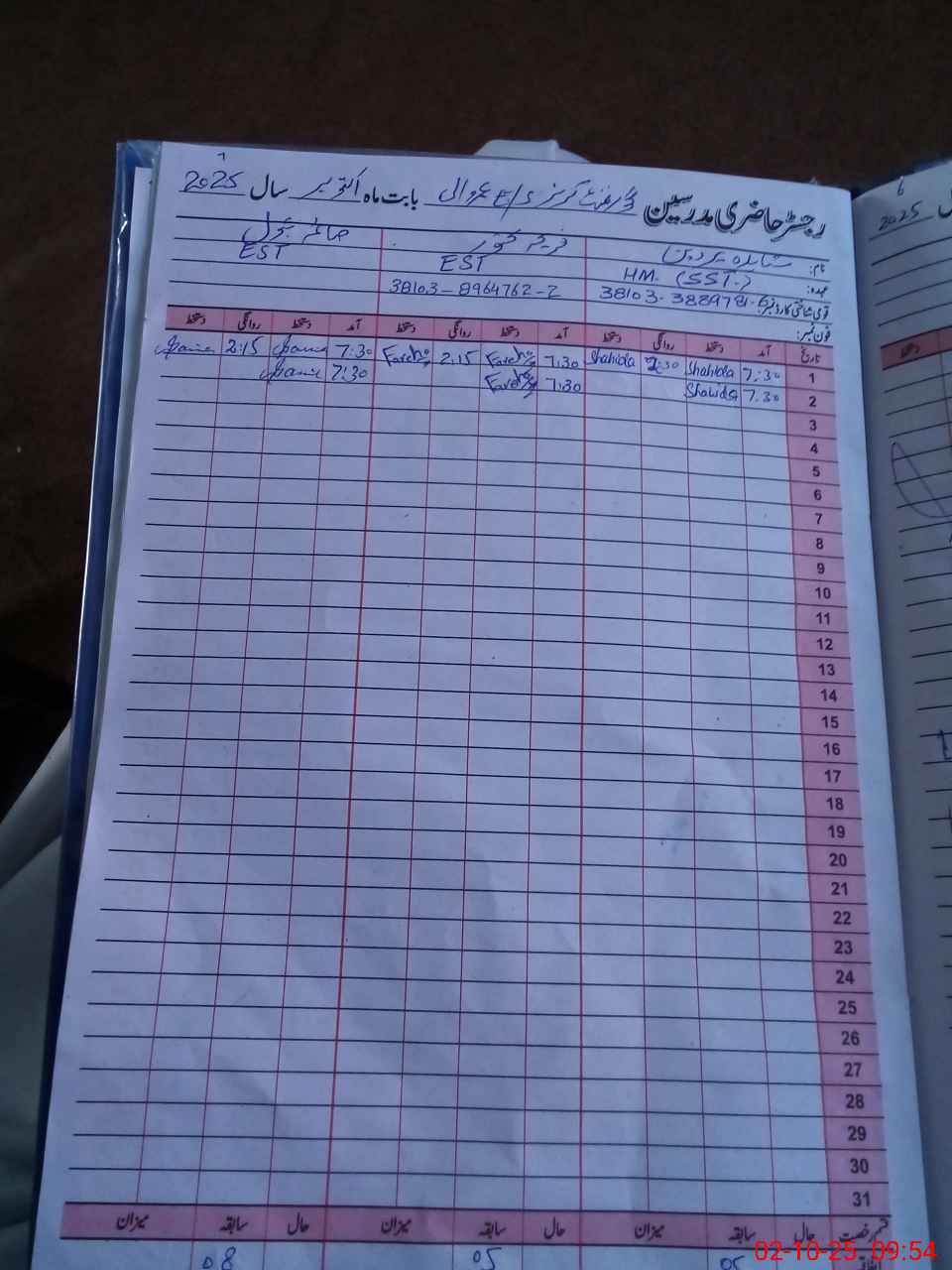 | Name: Sh**** Pa**** Designation: (School Headmaster's/Headmistress's) SST Phone/Cell Number: 03**** |