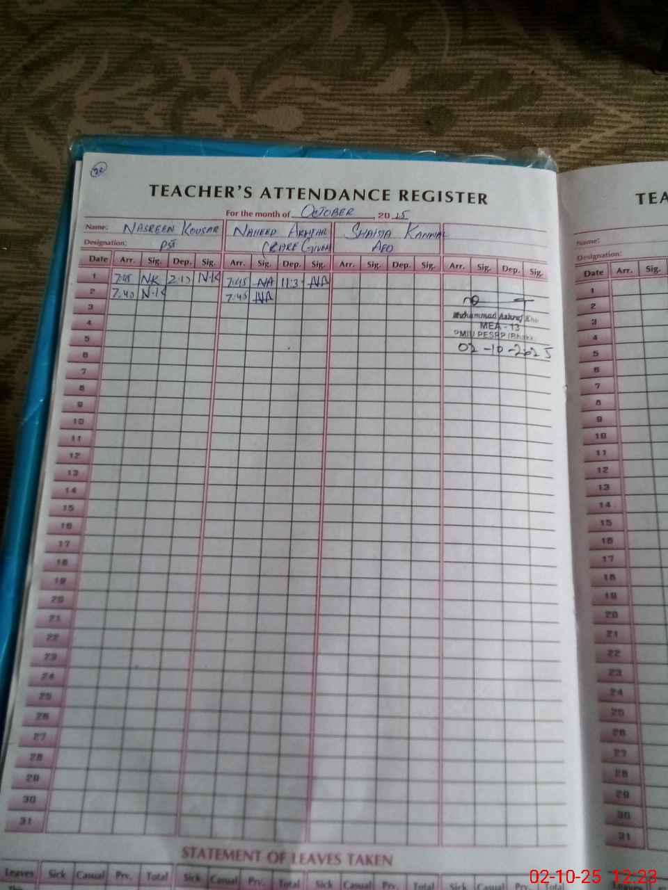 | 38**** | Ta**** Iq**** | NQ | Regular | 0 | 0 | 0 | 0 | 0 | 0 | 0 | 0 | 0 | Absent (Un-Authorized) |