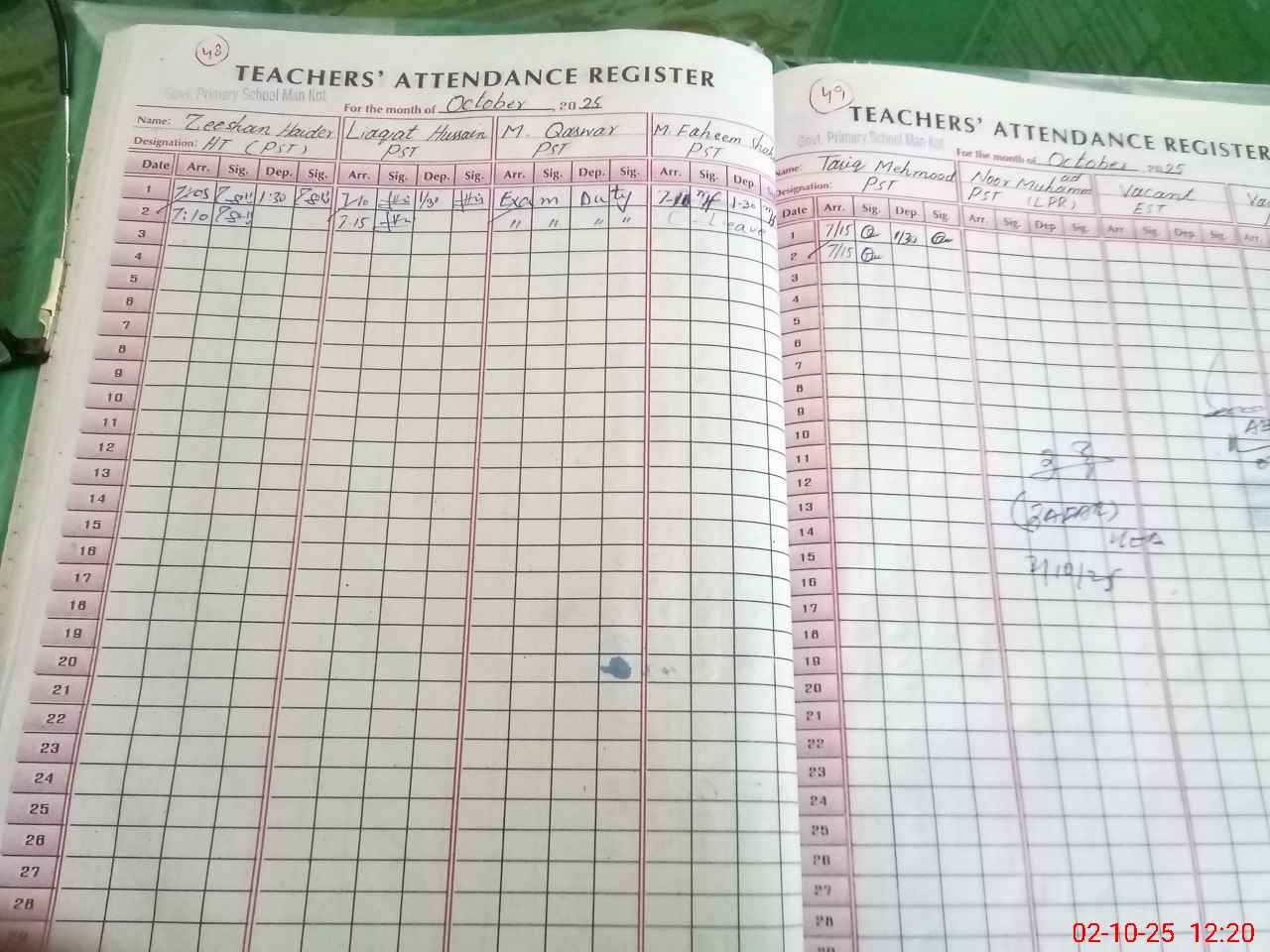 | 36**** | Mu**** Qa**** Na**** | PST | Regular | 0 | 0 | 0 | 0 | 0 | 0 | 0 | 0 | 0 | Exam Duty |