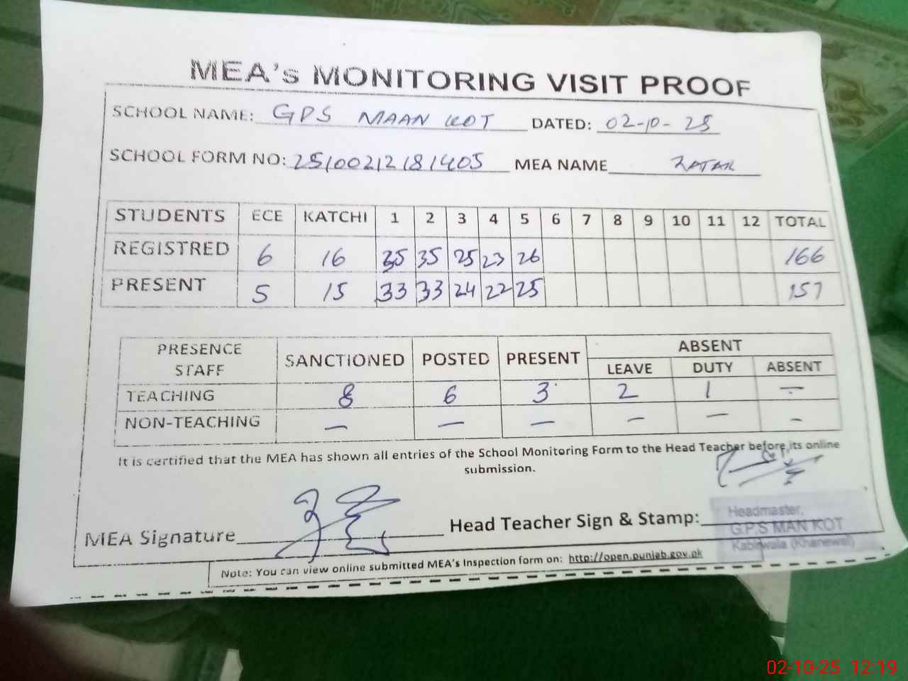 | EMIS Code: 36410311 | Name of School: GPS MAAN KOT, NAWAN SHEHR | |||