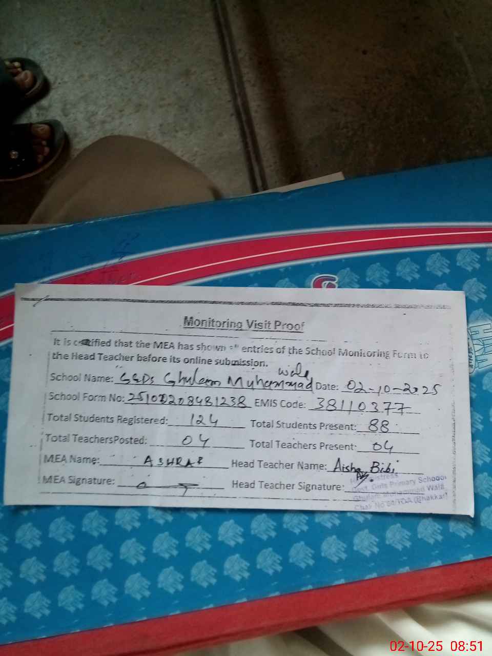 | EMIS Code: 38110377 | Name of School: GGPS GHULAM MUHAMMAD WALA | |||