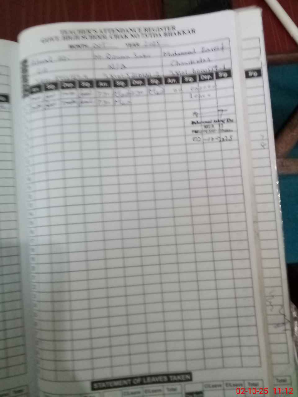 | Name: Mu**** Aa**** Designation: (School Headmaster's/Headmistress's) SST Phone/Cell Number: 03**** |