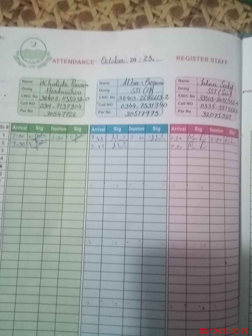 | Name: AK**** BE**** Designation: (School Headmaster's/Headmistress's) I C SST Arts Phone/Cell Number: 03**** |