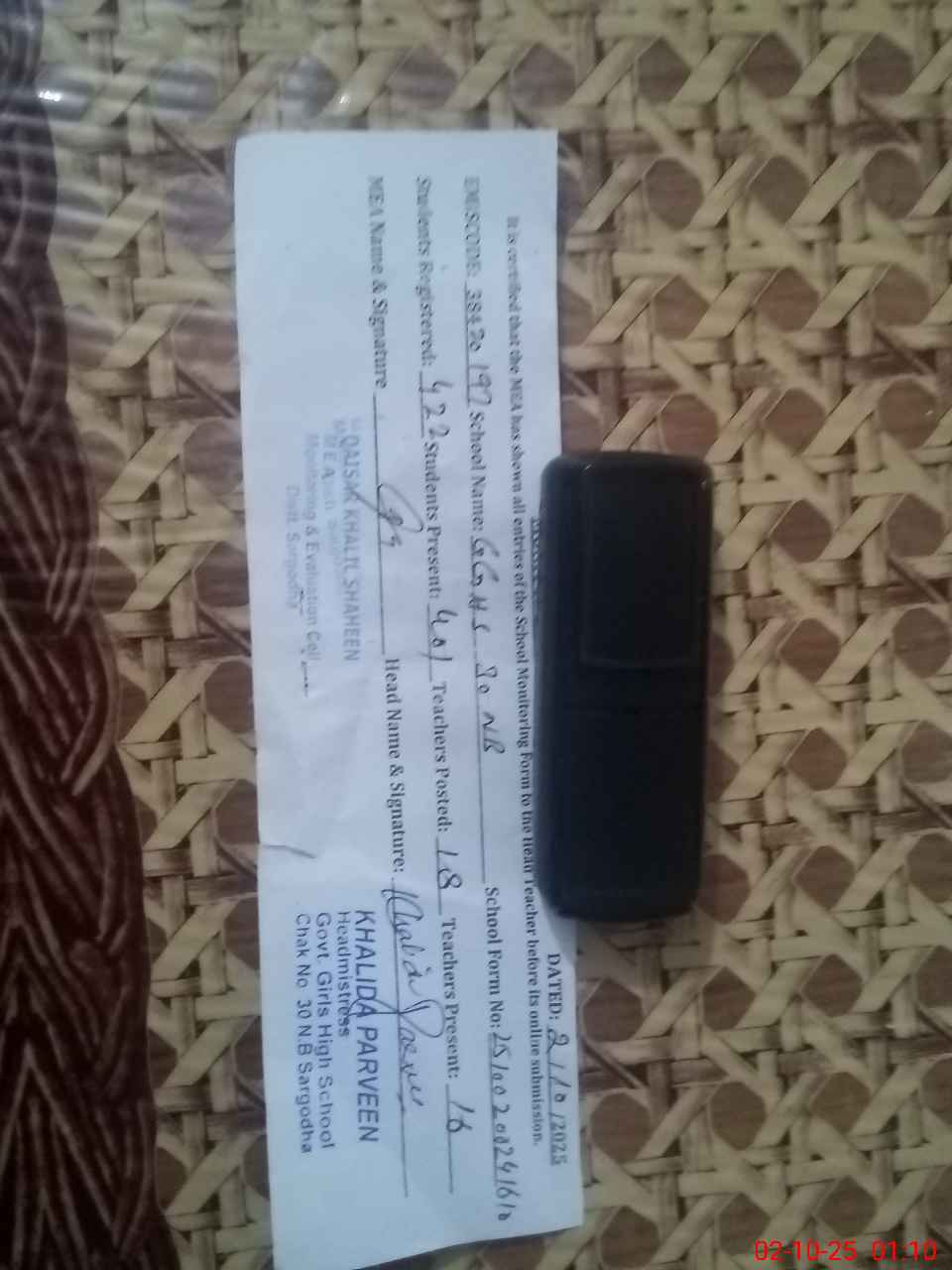 | Certified that this School was Inspected by the Undersigned MEA/DMO Today and the Information Stated Above is as Per Record. | |||||