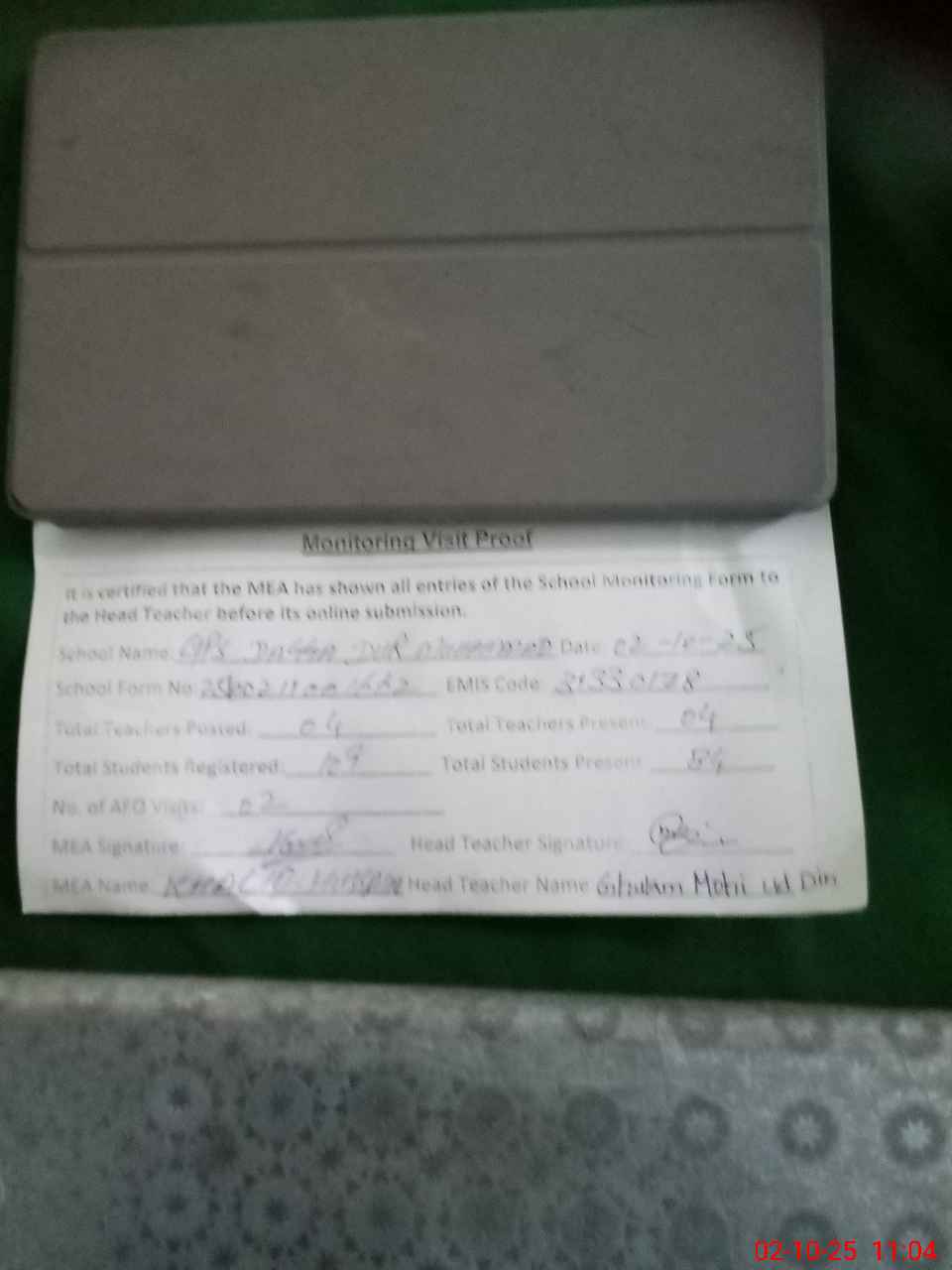 | EMIS Code: 31330178 | Name of School: GPS DAGGA DUR MUHAMMAD | |||