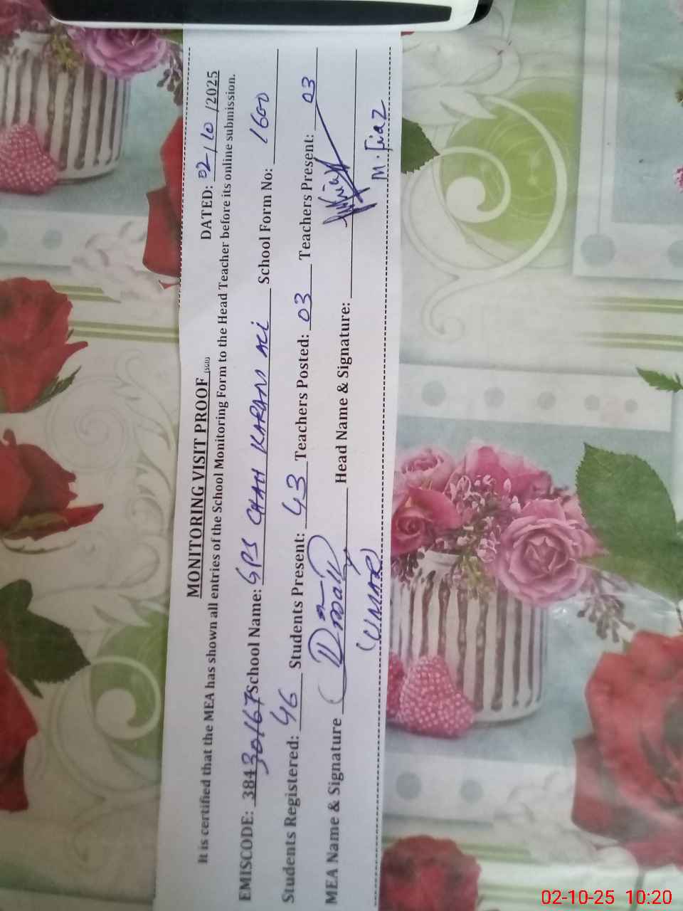 | EMIS Code: 38430167 | Name of School: GPS CHAH KRAM ALI WALA | |||