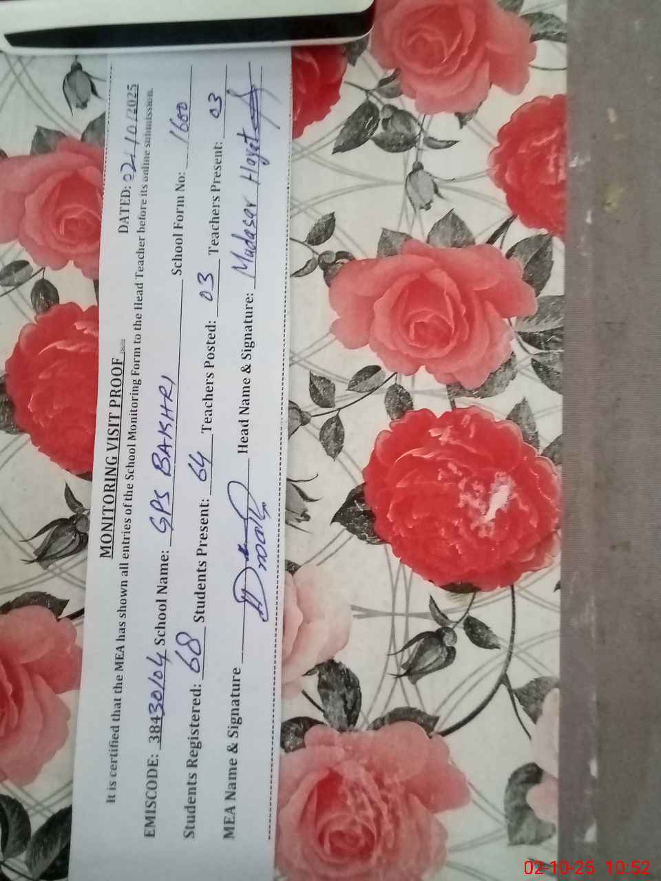 | EMIS Code: 38430104 | Name of School: GPS BAKHARI | |||
