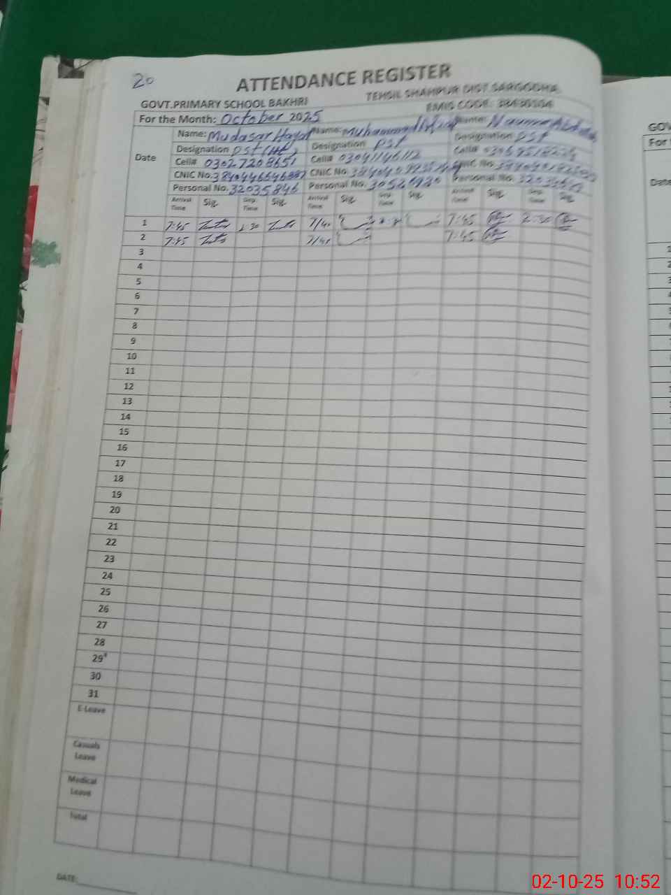 | Name: MU**** HA**** Designation: (School Headmaster's/Headmistress's) PST Phone/Cell Number: 03**** |