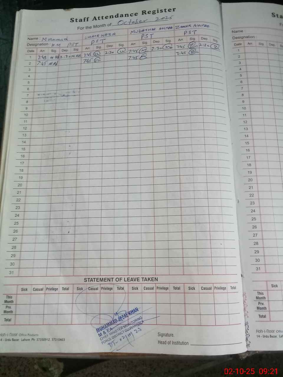 | Name: Mu**** HA**** Designation: (School Headmaster's/Headmistress's) PST Phone/Cell Number: 03**** |