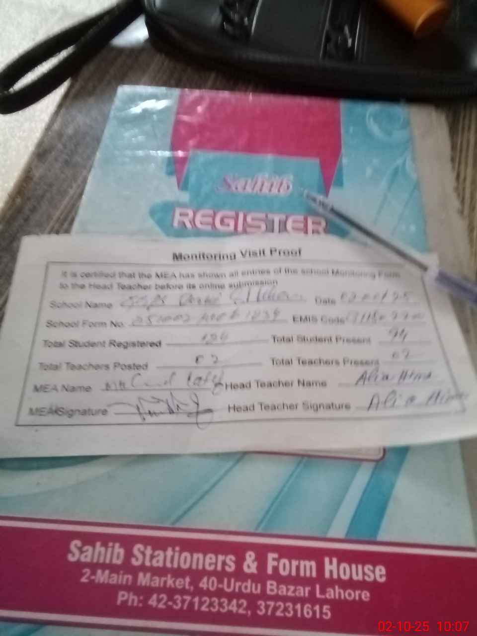 | Attendance Register | Head Teacher | MEA with School | Visit Proof |