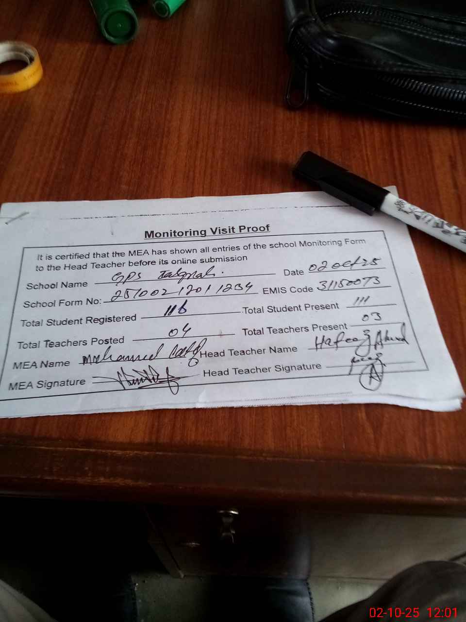 | EMIS Code: 31150073 | Name of School: GPS TABQRAH | |||