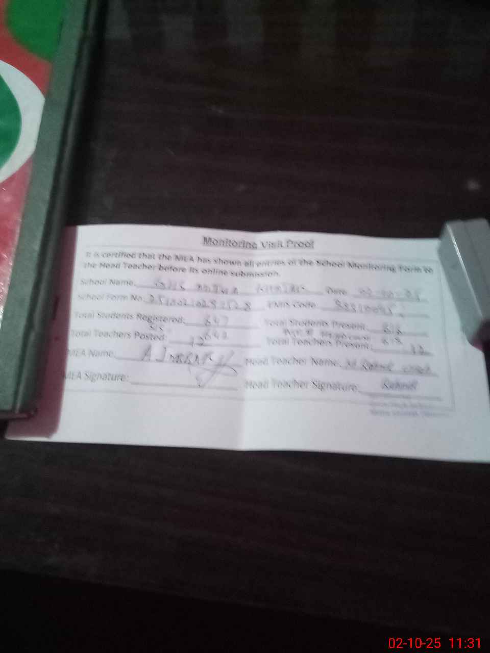 | Certified that this School was Inspected by the Undersigned MEA/DMO Today and the Information Stated Above is as Per Record. | |||||