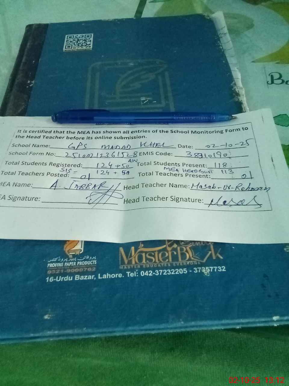 | EMIS Code: 38310190 | Name of School: GPS MADAD KHEL | |||