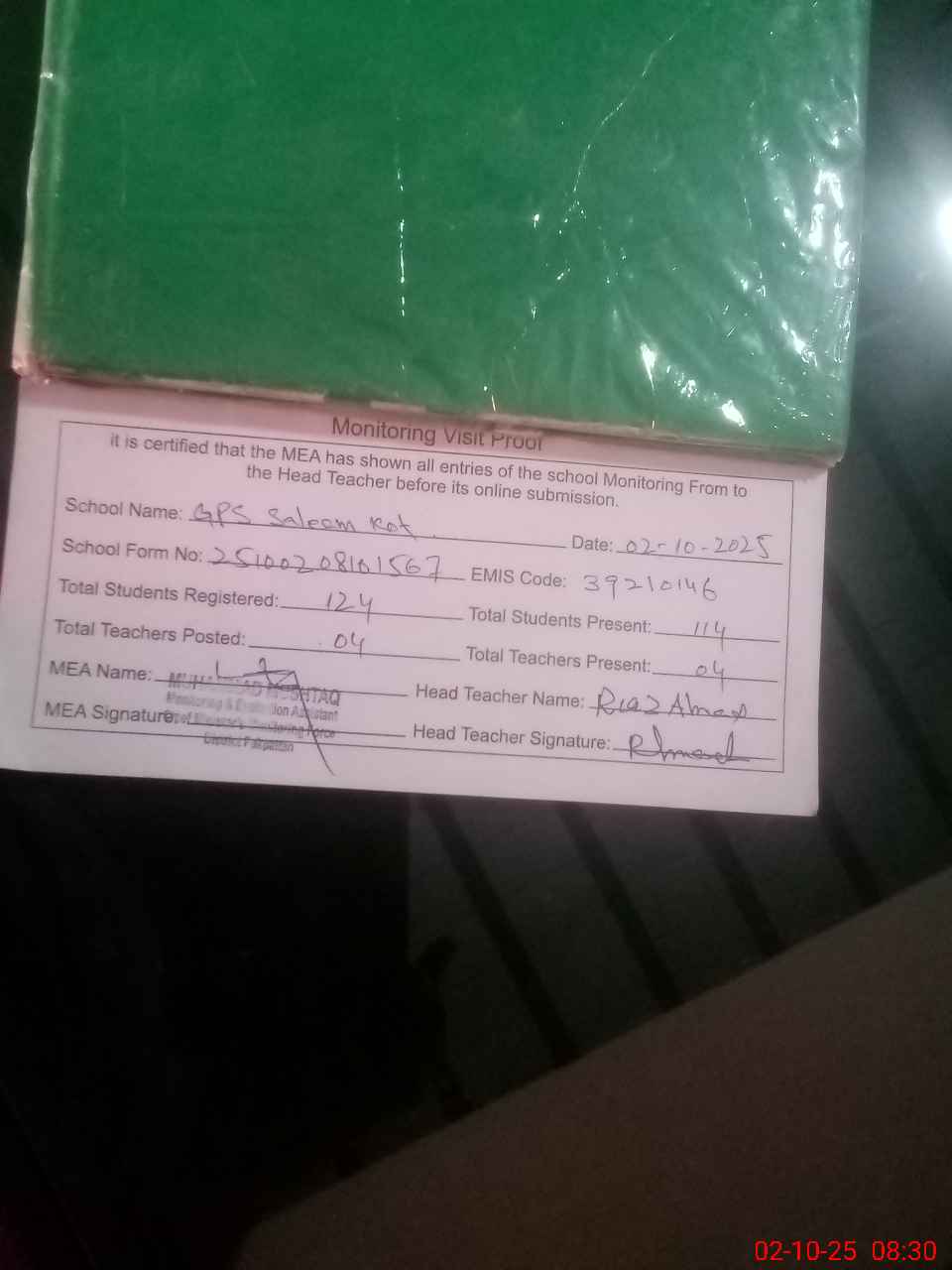 | EMIS Code: 39210146 | Name of School: GPS SALEEM KOT PAKPATTAN | |||