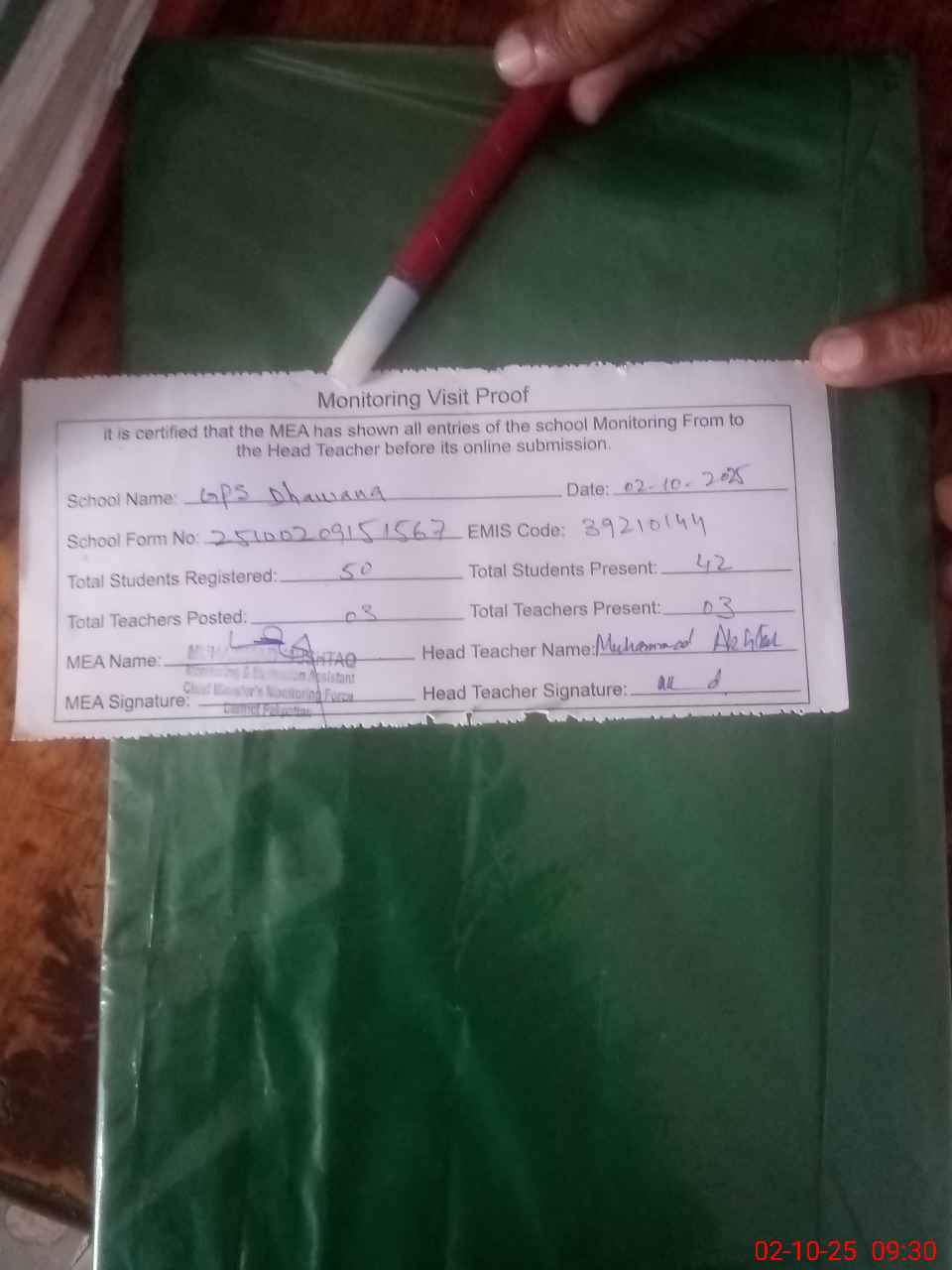 | EMIS Code: 39210144 | Name of School: GPS DHAWANA | |||