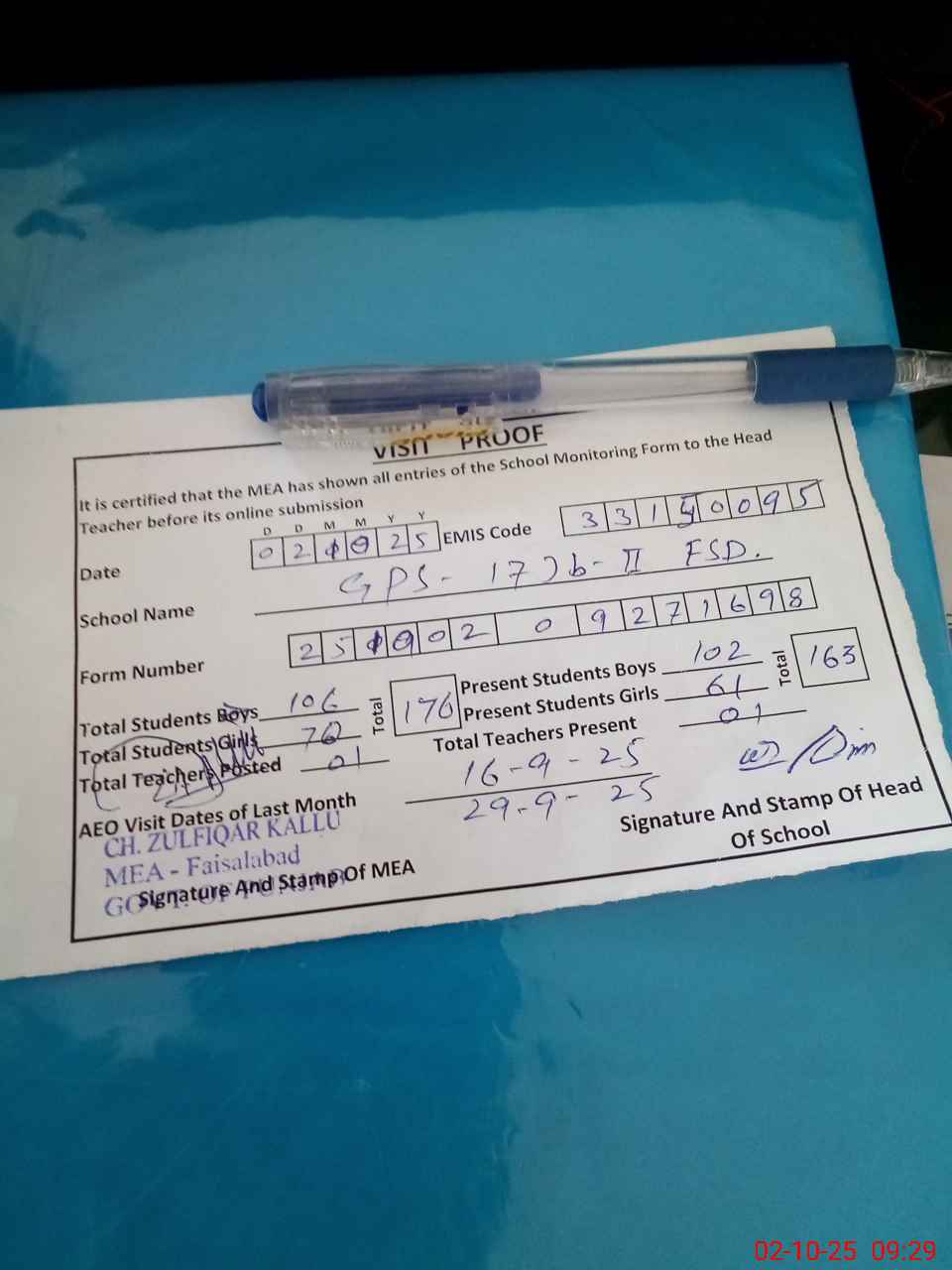 | EMIS Code: 33150095 | Name of School: GPS 19 JB II | |||