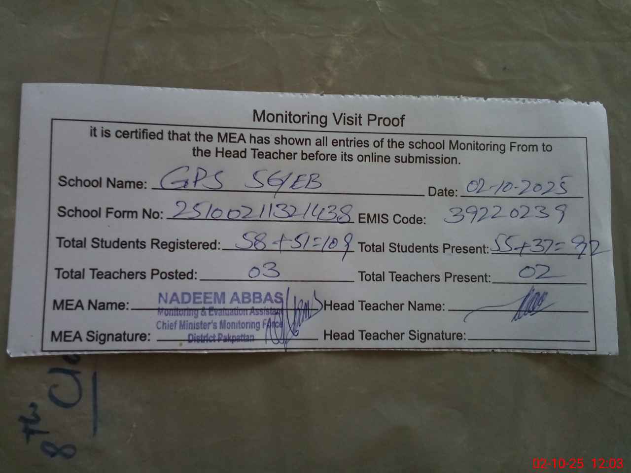 | EMIS Code: 39220239 | Name of School: GPS 56 EB | |||