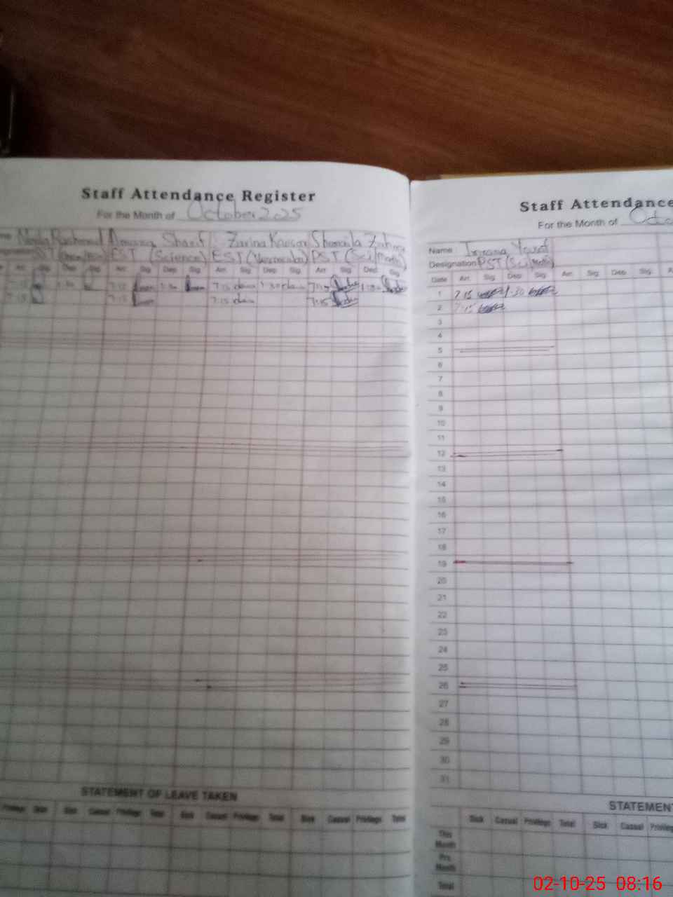 | CNIC | Full Name | Designation | R/C | Absence During Last Calender Month |