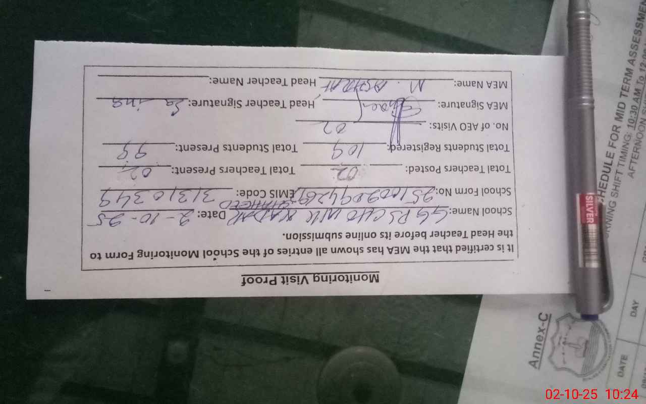 | Monitoring Date: 02-10-2025 | Start Time: 02-10-2025 09:41 AM | End Time: 02-10-2025 10:25 AM | Name of MEA: Mu**** As**** KP**** | |