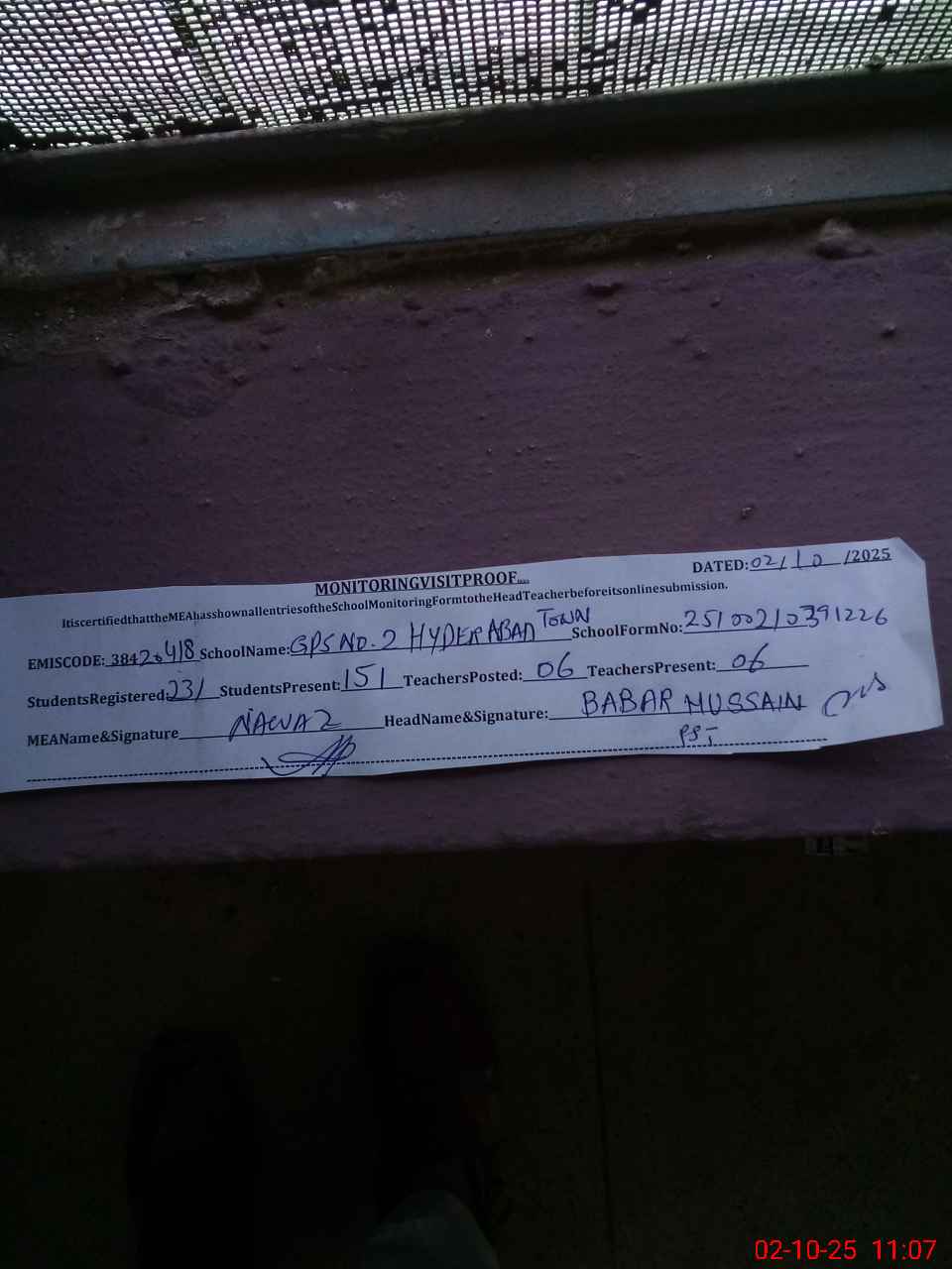 | EMIS Code: 38420418 | Name of School: GPS NO. 2 HYDERABAD TOWN | |||