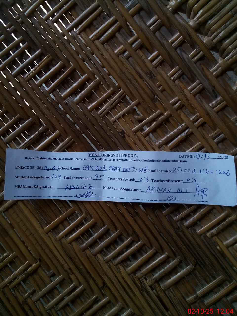| EMIS Code: 38420487 | Name of School: GPS CHAK NO.71 NB | |||
