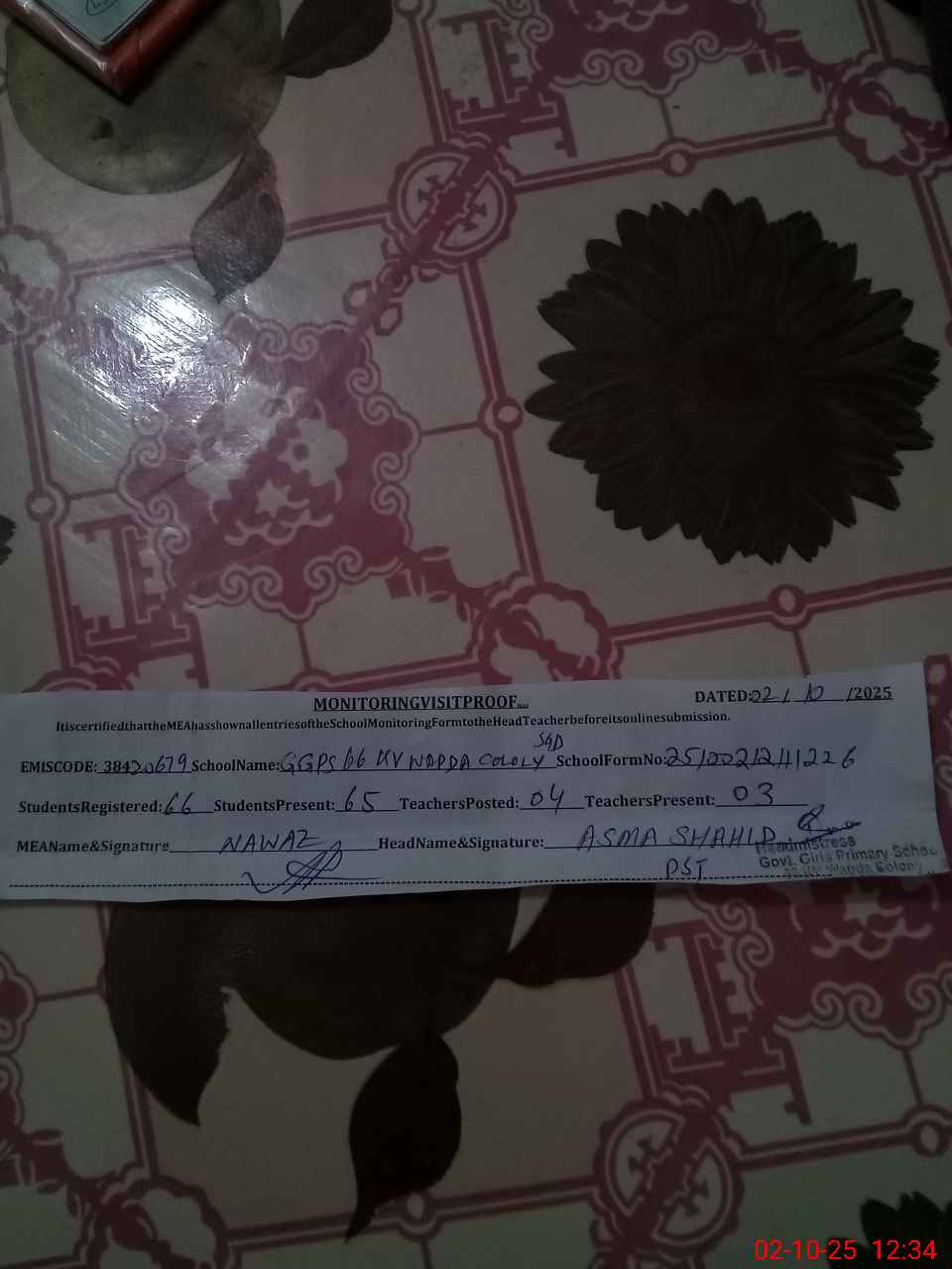 | EMIS Code: 38420679 | Name of School: GGPS 66 KV WAPDA COLONY | |||