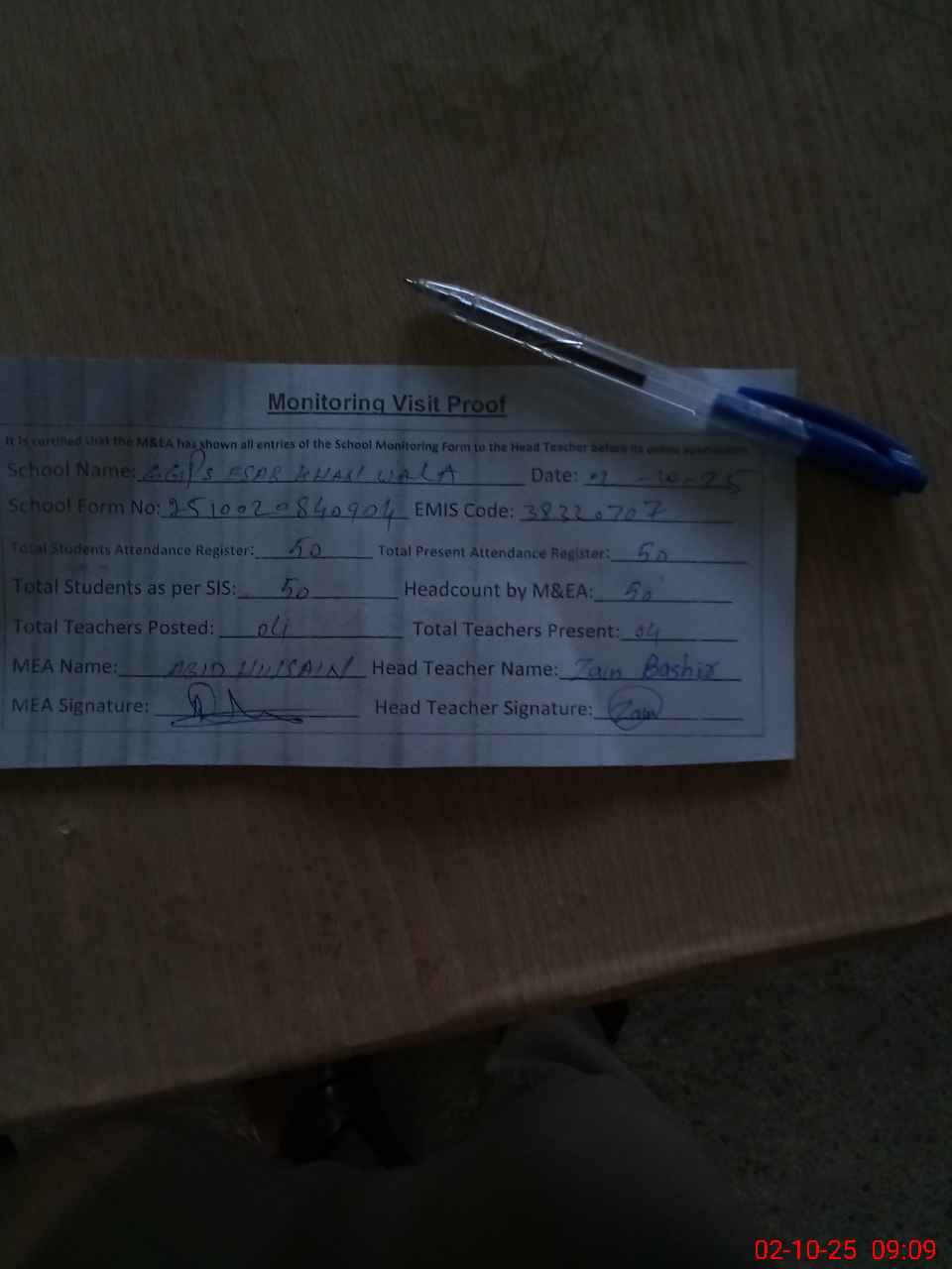 | EMIS Code: 38320707 | Name of School: GGPS ESAB KHAN WALA | |||