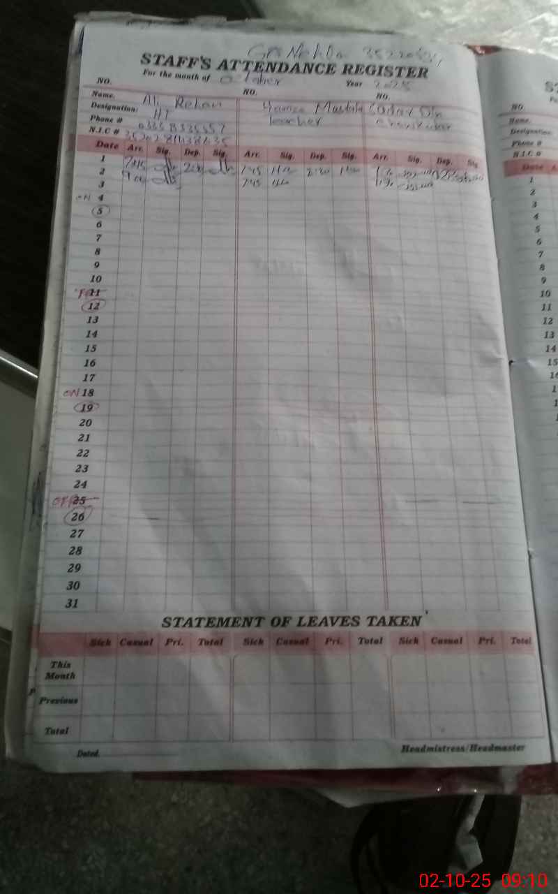 | Name: Al**** Re**** Designation: (School Headmaster's/Headmistress's) Head Master Phone/Cell Number: 03**** |