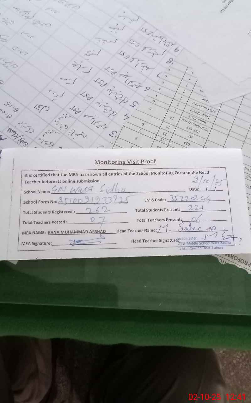 | Certified that this School was Inspected by the Undersigned MEA/DMO Today and the Information Stated Above is as Per Record. | |||||
