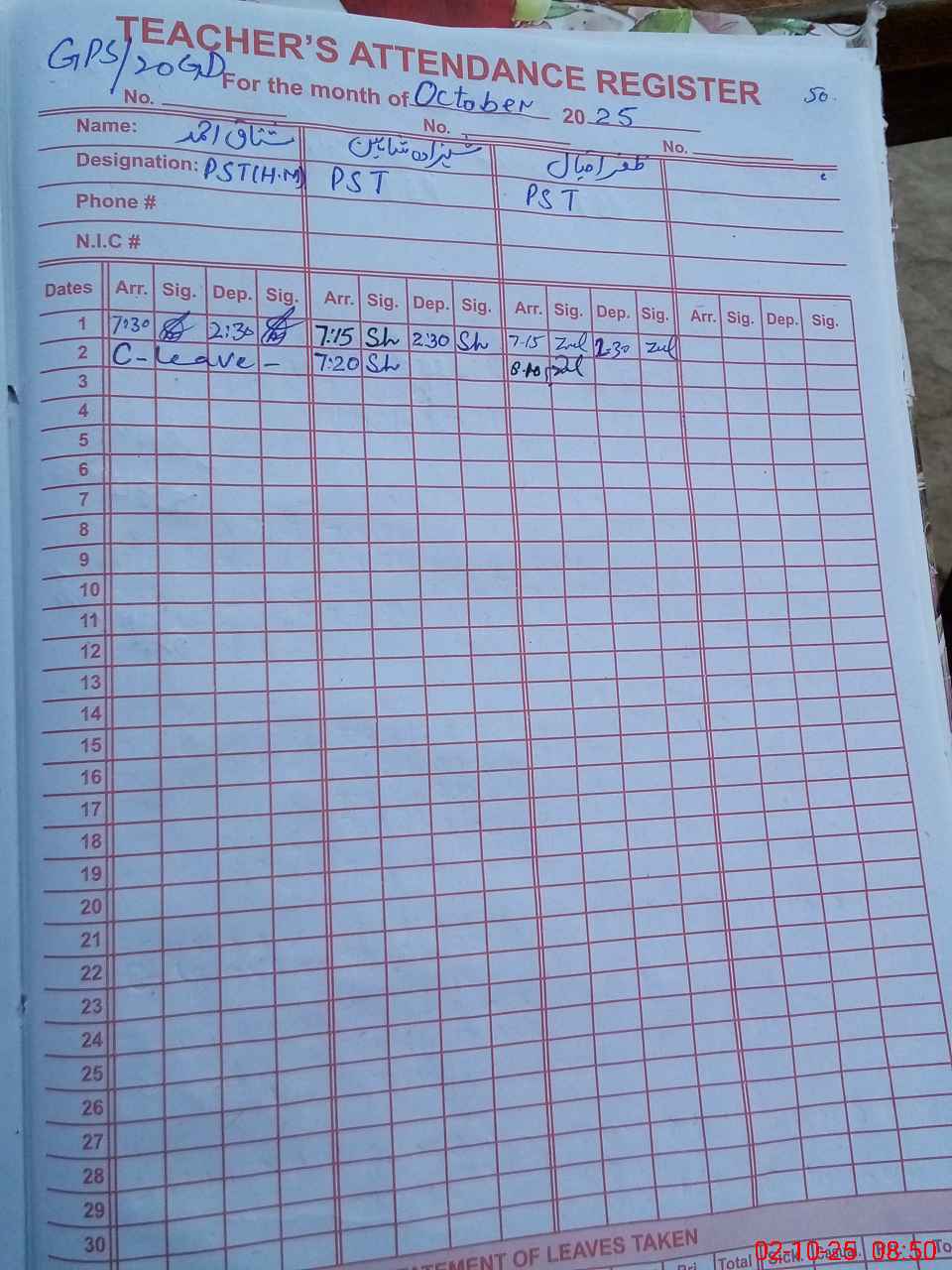 | 35**** | Sh**** Al**** | PST | Regular | 0 | 0 | 0 | 0 | 0 | 0 | 0 | 0 | 0 | Exam Duty |