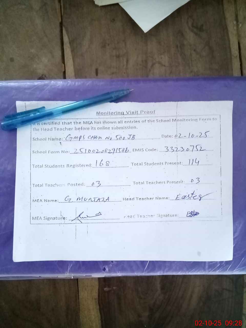 | EMIS Code: 33230752 | Name of School: GMPS CHAK NO. 500 JB | |||