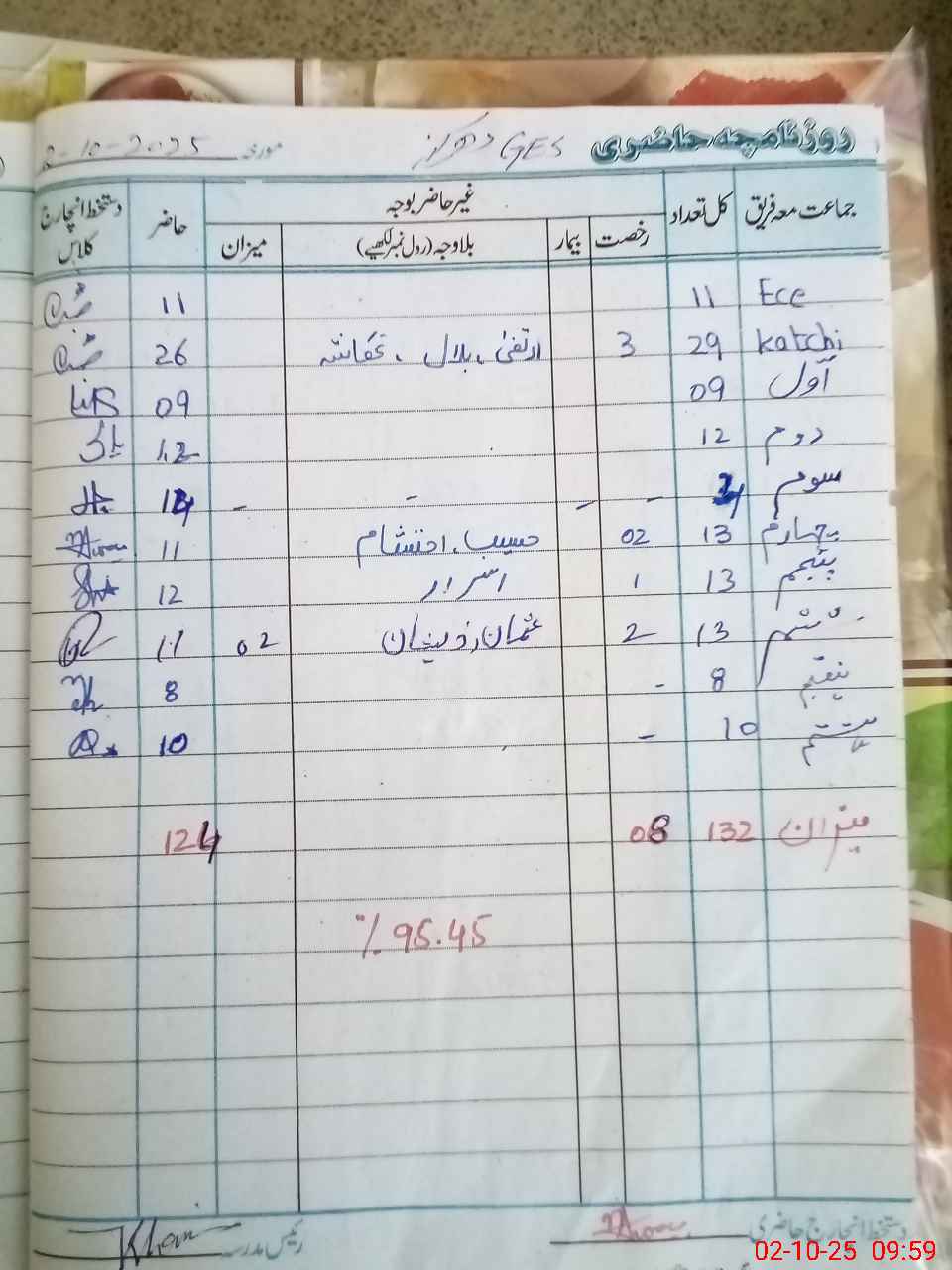 | Total Students Present | 11 | 0 | 26 | 9 | 12 | 14 | 11 | 12 | 11 | 8 | 10 | 124 | ||||