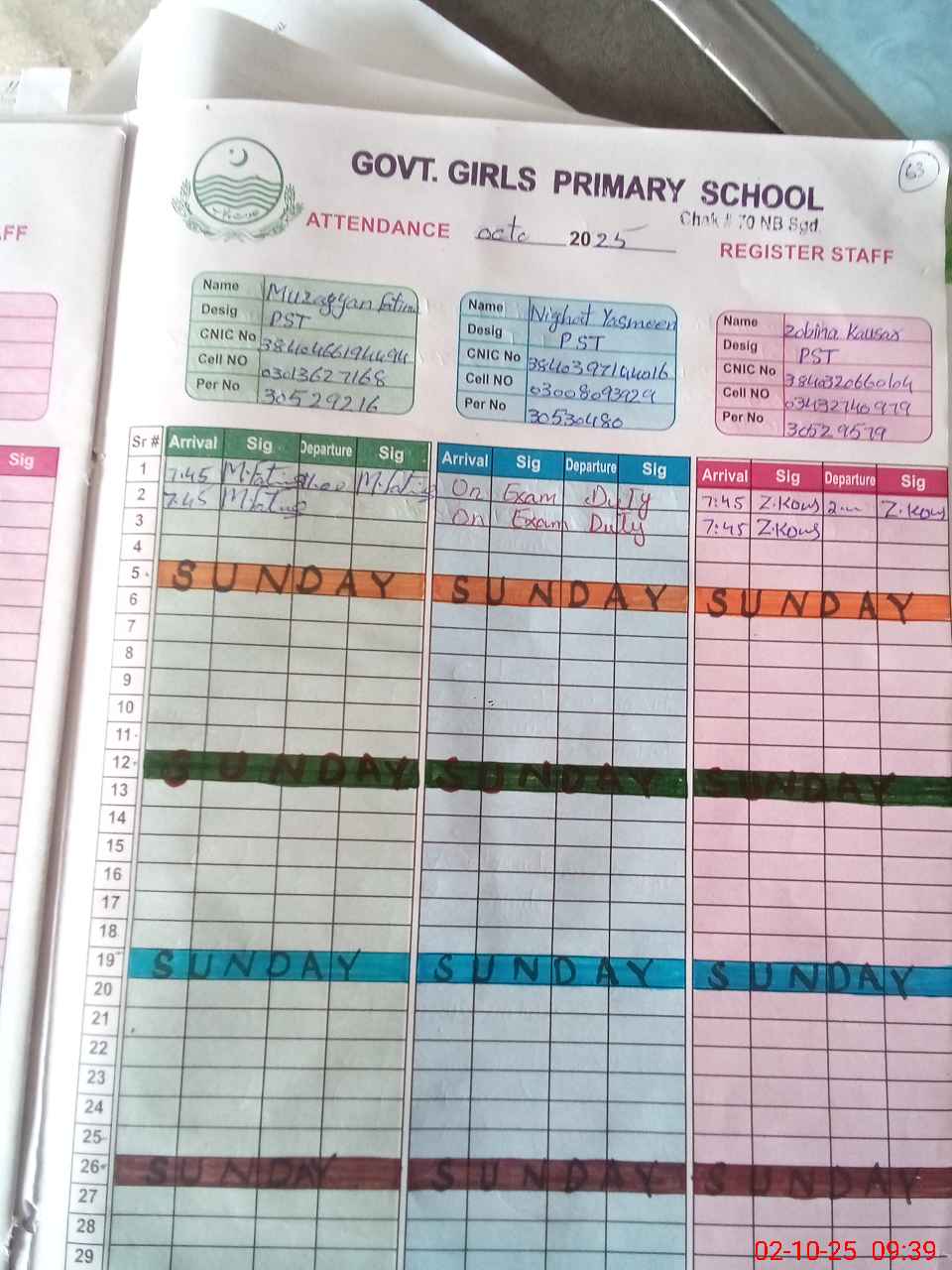 | Remarks (Use Separate Page if Required): PST Zahida kanwal not present in school | |||||