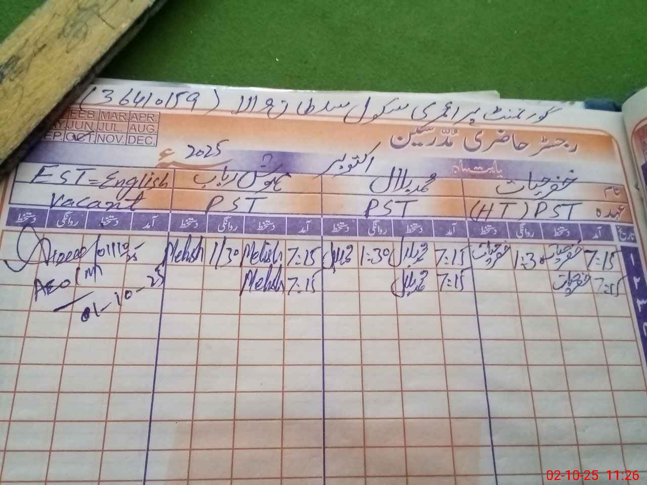 | Name: Kh**** Ha**** Designation: (School Headmaster's/Headmistress's) PST Phone/Cell Number: 03**** |