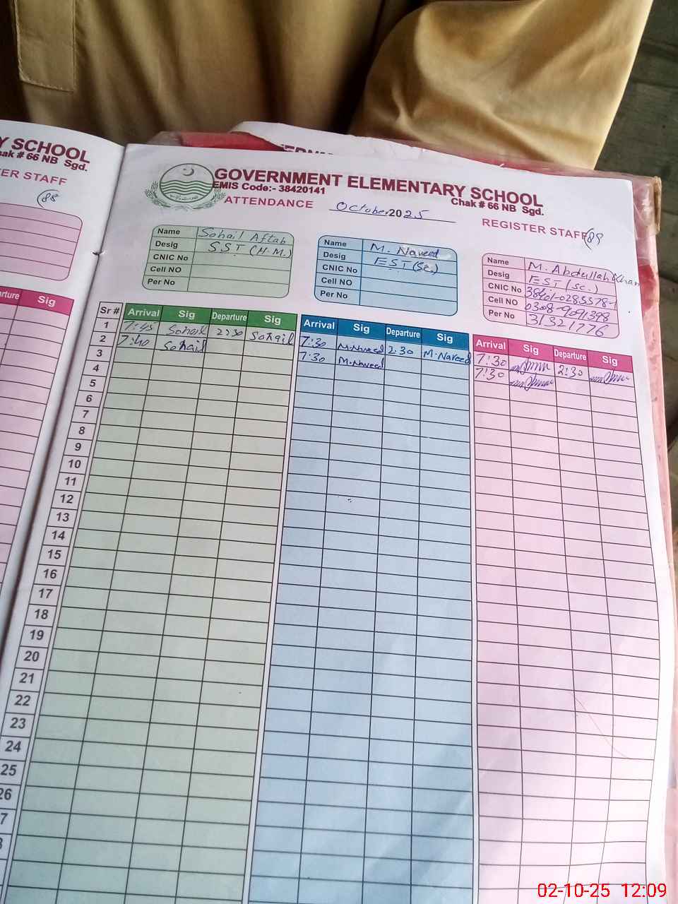 | Name: SO**** AF**** Designation: (School Headmaster's/Headmistress's) SST (SCIENCE) Phone/Cell Number: 03**** |