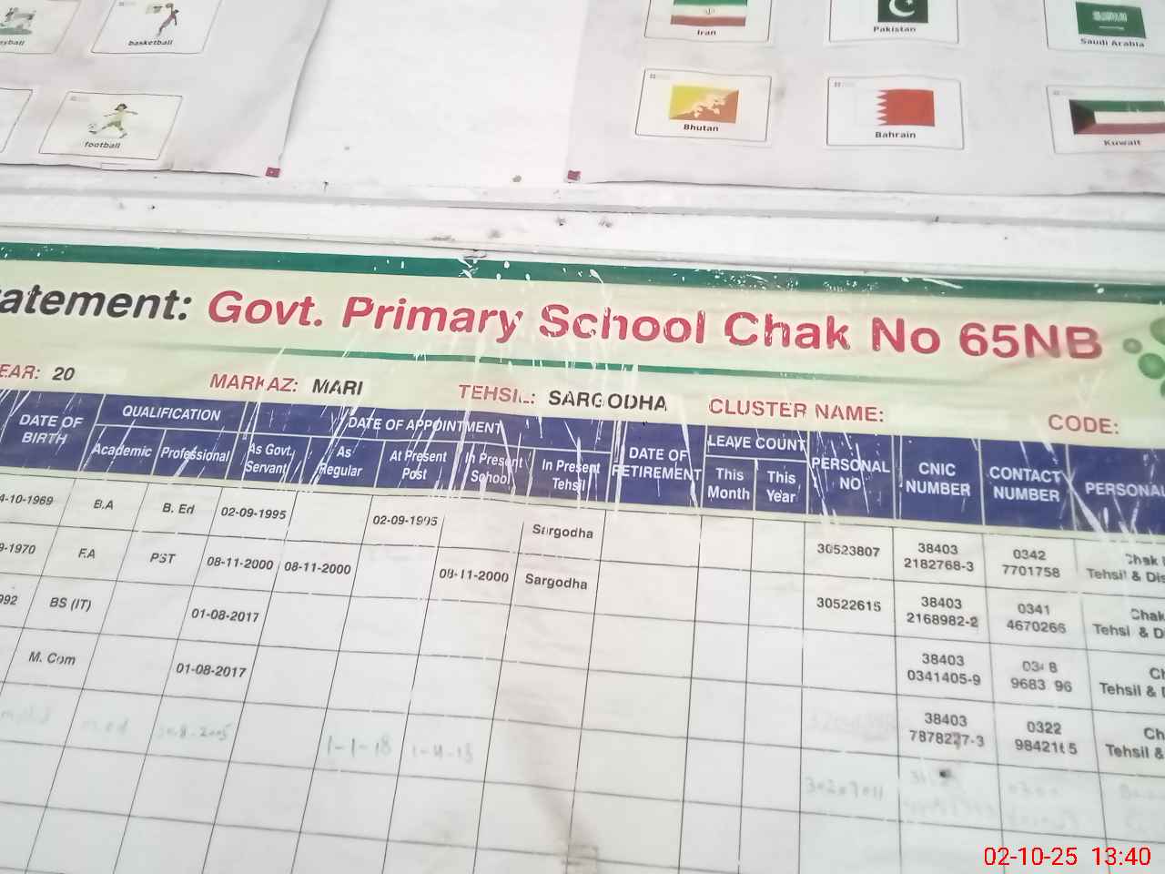 | EMIS Code: 38420433 | Name of School: GPS CHAK NO.65 NB | |||