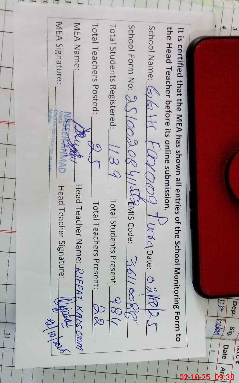 | EMIS Code: 36110088 | Name of School: GGHS FAROOQ PURA OLD SHUJABAD ROAD MULTAN | |||